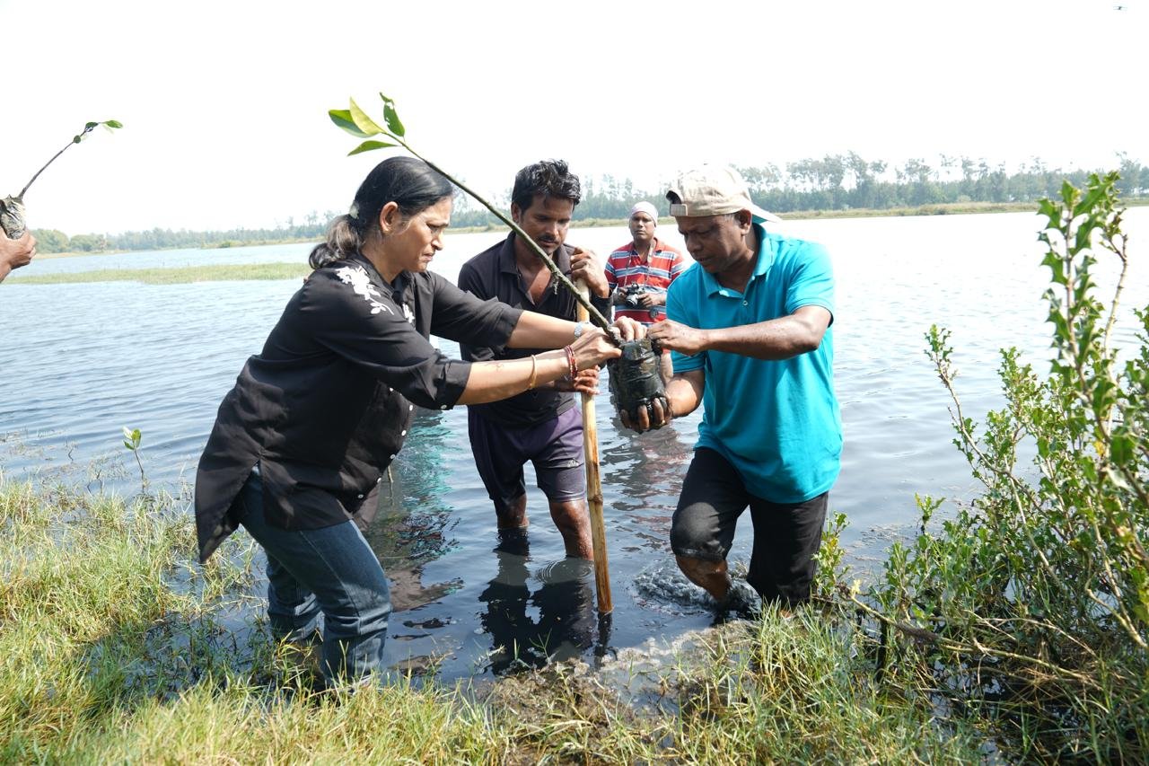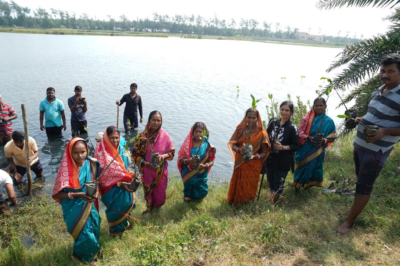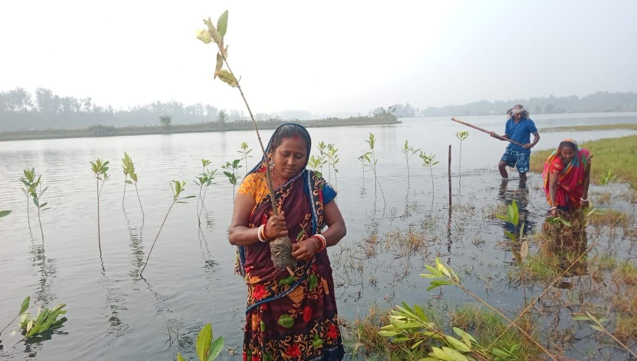Sakuntala knew she couldn’t plant a forest alone; she needed the community. Through her organization, CeRCA, she partnered with groups like APOWA and the Satvik Soul Foundation to mobilize at the grassroots. The hurdles were often psychological, as many villagers viewed mangroves as “useless” bushes blocking shrimp farming. Sakuntala spent months in dialogue under village trees, explaining the economics of disaster. “We sat with the community and helped them understand how mangroves can save their lives and livelihoods. They already knew its importance—we just motivated them to take action before it’s too late. We called it “Mangroves for Resilience,” she explains. This effort bore fruit at the Jatadhar River mouth, where an initial 10,000 mangrove saplings have now grown into a forest and protected about 1.5 lakh mangrove trees. “As of now, we have planted about 80 thousand saplings,” Sakuntala says proudly.